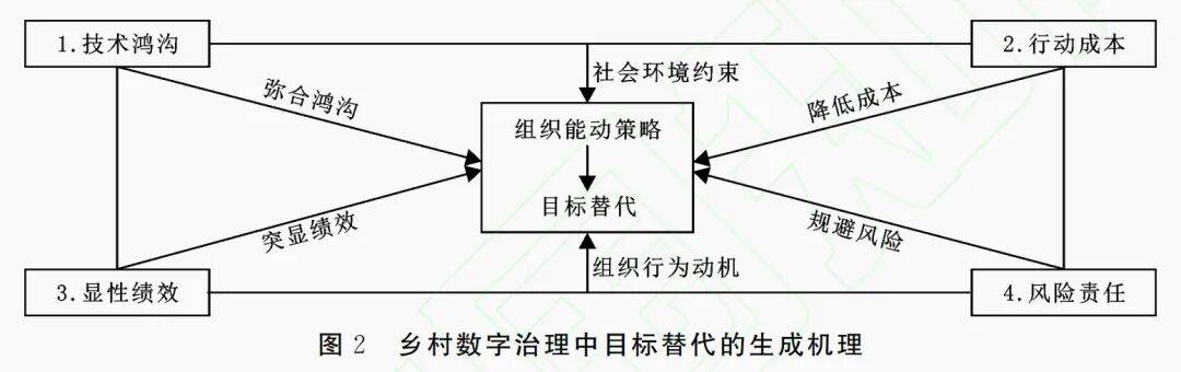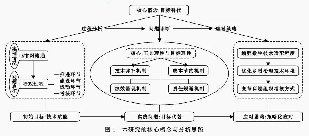 在实践过程中,我国乡村数字治理也取得了突出成就,各地区涌现出一批具有借鉴意义的先进经验。与此同时还应该看到,部分地区的乡村数字治理也出现了一些问题,特别是数字技术在运行过程中出现了目标替代——乡村数字治理中使用的数字技术不断迭代更新,数据算法日益复杂,数据规模日益庞大,但乡村数字治理的实际运行过程越来越背离初衷,“有数字化而无转型”,数字技术赋能乡村治理被替代为下载App、打卡填单、上报数据、拍摄照片、购置摄像头、安装显示屏等事务性行为,至于数字技术是否真正赋能乡村治理反而被淡化。作为一种体现现代化发展方向的数字技术为何在农村基层治理领域中会出现这种目标替代成为亟需重点关注和解决的命题。本研究的目的就是从社会、组织、技术多重因素相叠加的角度分析乡村数字治理中的目标替代,归纳表现形式、探究生成原因,提出校正路径,以此增强乡村数字治理的实践效能。